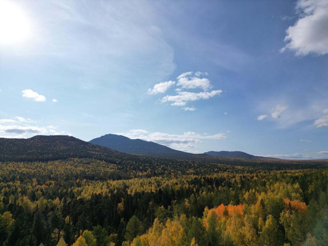 В заповеднике «Денежкин Камень» наступила золотая осень. Леса окрасились в яркие жёлтые и красные тона. С высоты птичьего полёта можно увидеть, как природа готовится к зиме, превращая горные склоны и долины в живописный ковёр осенних красок.